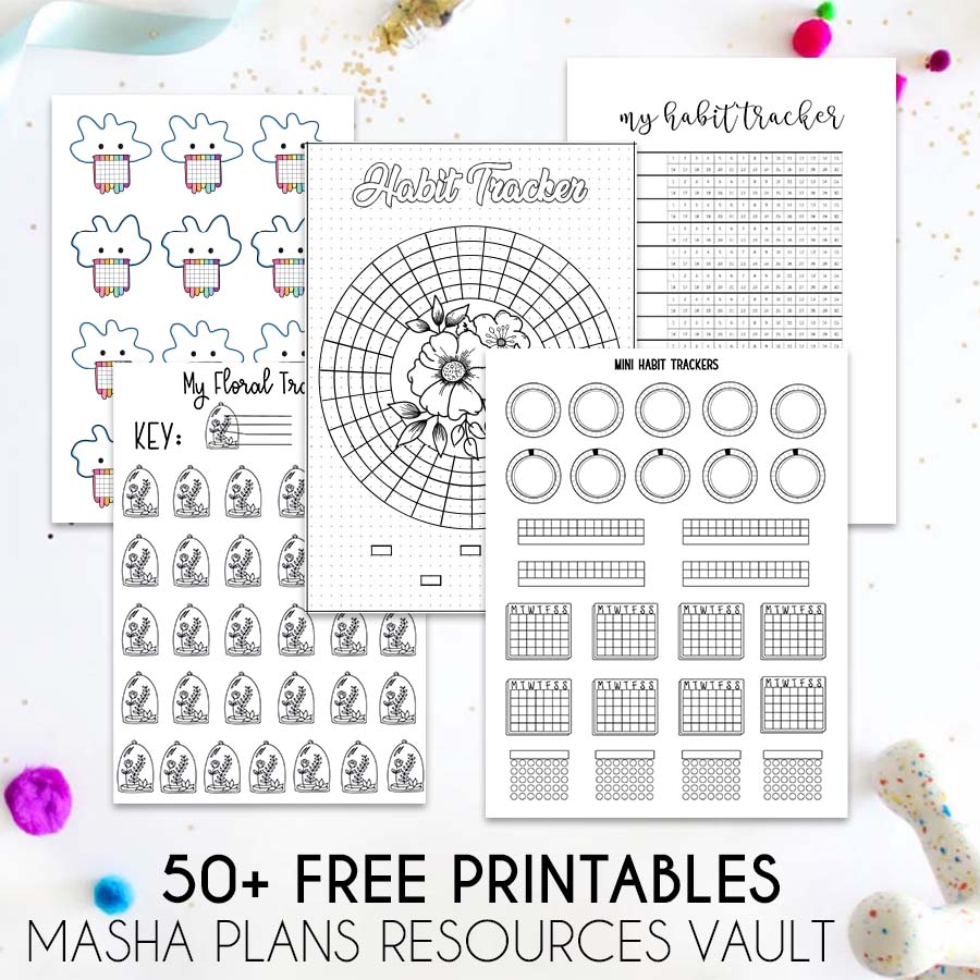 Before you leave, I wanted to mention again all the FREE printables already available in the Resources Vault, including several different habit trackers.