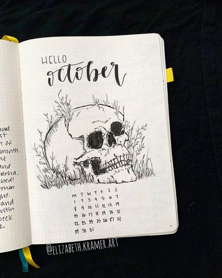 Skulls are classics for a spooky Halloween Bullet Journal theme.