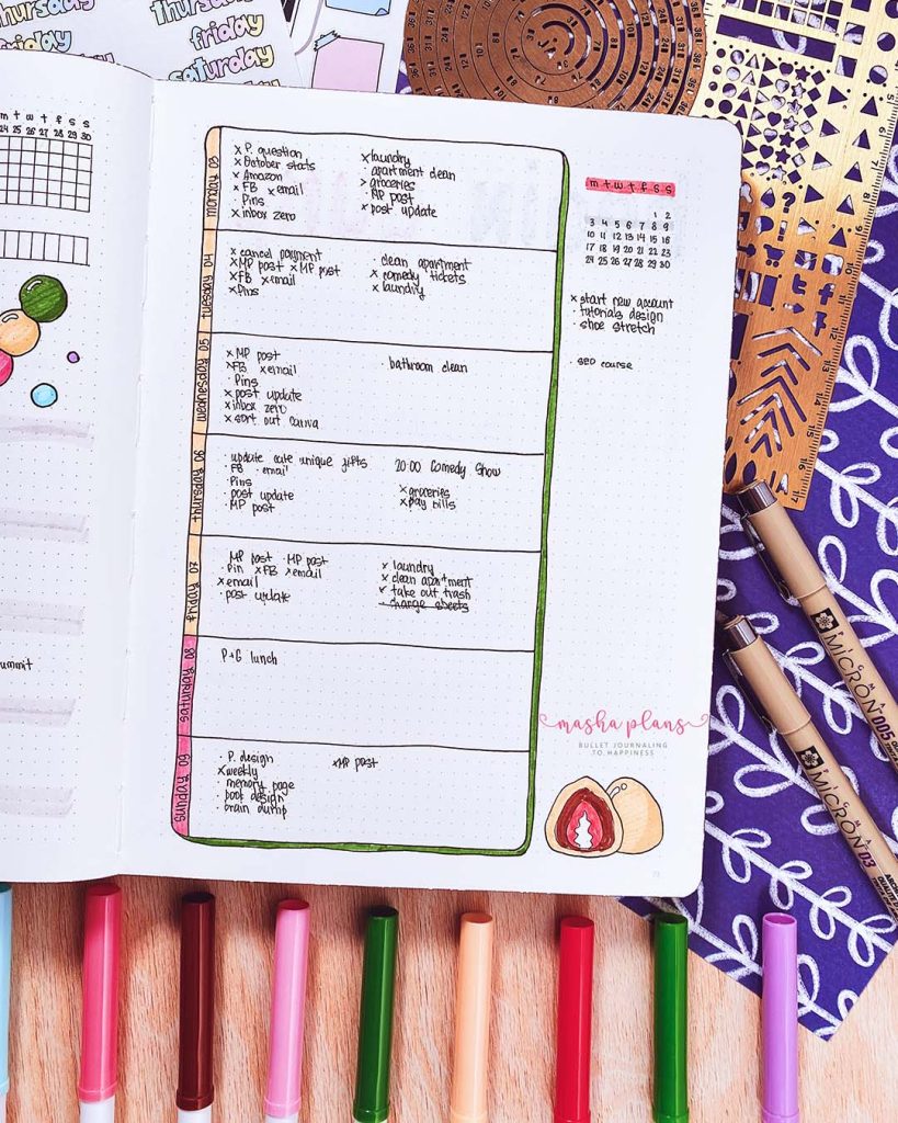 My requirement was for it to be colorful and cute, but at the same time, easy to draw. And this is when I found a weekly spread by @autumnaldrich, and it was the inspiration for the entire monthly theme for me.